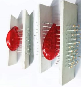 Memamerkan 3 karya seni kacanya.