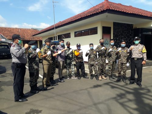 Banser Lakukan Penyemprotan Disinfektan dan Sebar Masker