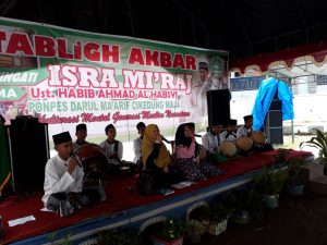 Maja – Dalam rangka memperingati Isra dan Mi’raj Nabi Muhammad SAW, ratusan santri Pondok Pesantren Darul Ma’arif Cikedung Maja antusias menampilkan budaya dan seni santri seperti seni barjanzi atau rebana shalawatan yang digelar di halaman Ponpes (Rabu, 18/4).