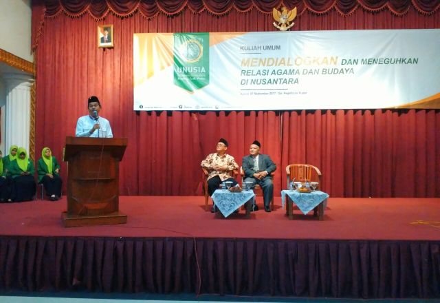 Universitas Nahdlatul Ulama (UNU) Indonesia menggelar kuliah umum, Kamis (7/9) di Gedung Serba Guna Pegadaian Pusat Jakarta bertajuk Mendialogkan dan Meneguhkan Relasi Agama dan Budaya di Nusantara. Tahun 2017 ini, Bupati Kabupaten Purwakarta H Dedi Mulyadi didaulat sebagai pengisi kuliah umum.