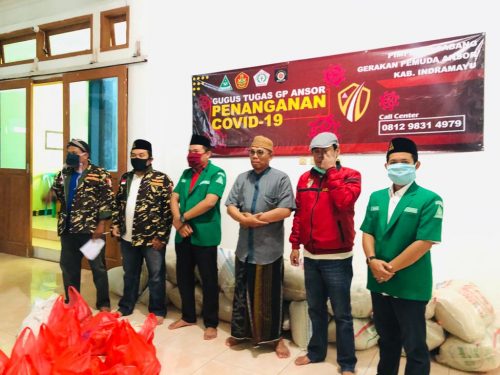 Indramayu – Walaupun tanpa bantuan dari pemerintah Kabupaten Indramayu, Gugus Tugas Penanganan Covid-19 GP. Ansor Kabupaten Indramayu telah membagikan sembako berupa 3 Ton beras dan 1 Ton krupuk udang serta minuman Vitamin-C kepada masyatakat Indramayu yang terdampak Covid-19, terutama keluarga miskin yang tidak tercover oleh bantuan pemerintah dan para guru ngaji yang masih tergolong dalam keluarga pra sejahtera.