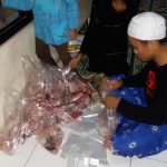 Acara syiar Muharam ini diakhiri dengan makan malam bersama dan berbagi keberkahan amanah daging secara simbolis yang dilakukan Ustadz Damansyah dan Ustadz Muhammad kepada beberapa Guru Lekar dan Pejuang Majelis Taklim.