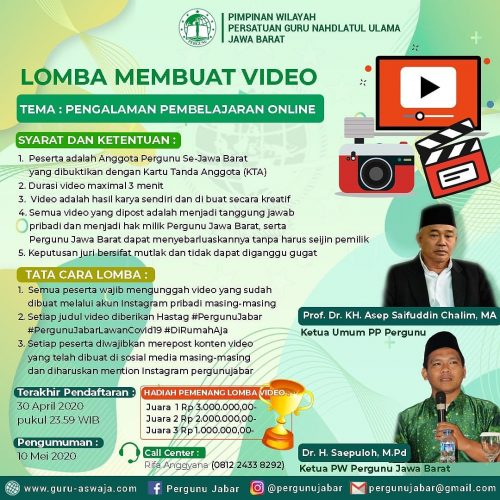 Bandung, Pimpinan Wilayah Persatuan Guru Nahdlatul Ulama (PERGUNU) Jawa Barat menggelar lomba video Instagram dalam rangka memperingati hari lahirnya yang Ke-68.