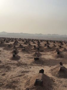 Sesampainya di tempat kuburan itu Nabi berbicara kepada penghuni kubur dan mendoakan keselamatan kepada mereka.