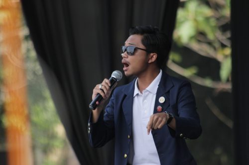 “Mahasiswa ilmu komunikasi seharunya bukan menjadi humas korporat apalagi kampus, tapi menjadi humas rakyat dalam menyuarakan kebenaran kepada mereka yang seharusnya mendengar.” Ujar Kang Ojan saat menyampaikan orasi.