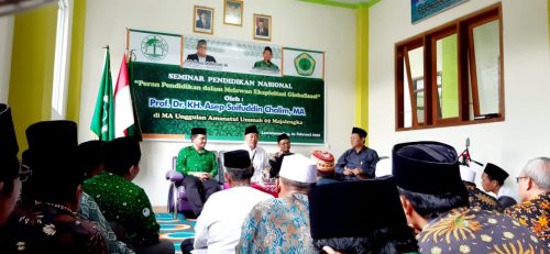 Demikian disampaikan oleh Ketua Umum Pimpinan Pusat Persatuan Guru Nahdlatul Ulama (PP. Pergunu) Prof. DR. KH. Asep Saefuddin Chalim, MA dalam acara Seminar Pendidikan Nasional dengan tema “Peran Pendidikan dalam Melawan Ekploitasi Glibalisasi” dalam rangka Peringatan Harlah NU Ke 94 di Madrasah Aliyah (MA) Amanatul Ummah Kecamatan Leuwimunding Kabupaten Majalengka, (Sabtu, 1/2).