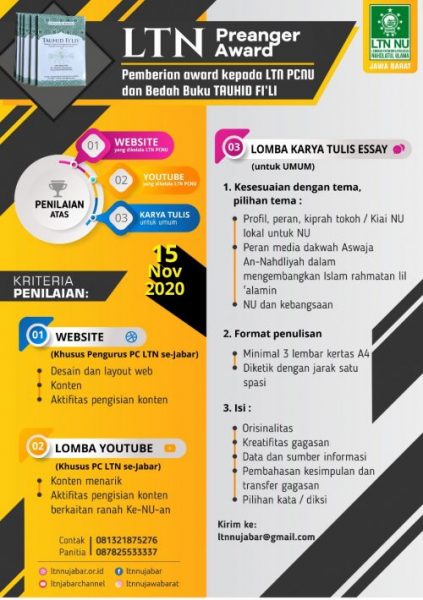 Mengevaluasi program tahunan, Pengurus harian LTN PWNU Jawa Barat mencoba menguatkan media melalui peta konsep jamaah medsosiah dengan membuat LTN Preangar Award. Ini merupakan bentuk apresiasi pengurus LTN Jawa Barat terhadap sahabat-sahabat NU yang aktif di Media, mereka semua telah bertempur habis habisan melakukan kontra narasi terhadap serangan garis Kanan.