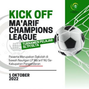 “LP. Ma’arif NU Kabupaten Pangandaran akan menggelar Kompetisi Sepak Bola antar Sekolah se- Kabupaten Pangandaran dan Kick Off Pertandingan di Mulai tanggal 1 Oktober 2022,” ungkapnya saat diwawancara, Rabu (21/09).
