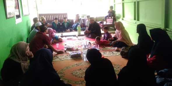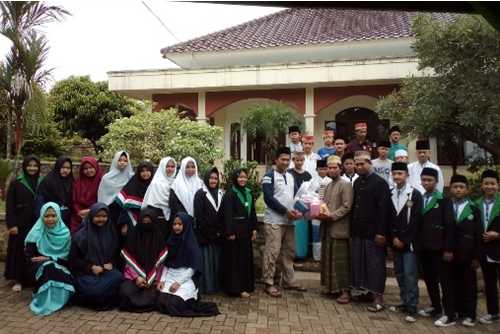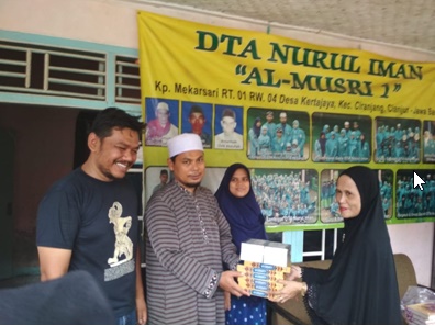 Pengurus Osis MA-MTs Nurul Iman menyerahkan bantuan berupa peralatan Shalat Al-Quran dan Iqro kepada DTA dan Pondok Pesantren di Kecamatan Ciranjang, Cianjur, Jawa Barat (24/03/2019).