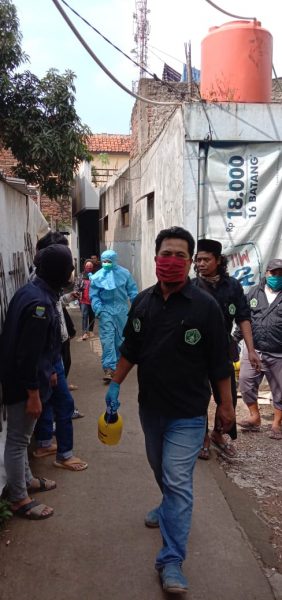 Pimpinan Anak Cabang Pagar Nusa Kecamatan Babakan Ciparay, Kota Bandung melakukan penyemprotan disinfektan secara mandiri untuk mencegah persebaran virus Corona atau COVID-19. Warga yang dikoordinir PAC Pagar Nusa Babakan Ciparay adalah hasil patungan dana/Swadaya Murni dari para Pengurus dan melakukan penyemprotan disinfektan sejumlah lokasi dan fasilitas umum, Senin (30/3/2020).