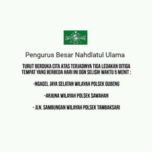 5. Mengimbau warga NU untuk senantiasa meningkatkan dzikrullah dan berdoa kepada Allah Swt. untuk keselamatan, keamanan, kemaslahatan, dan ketenteraman hidup dalam berbangsa dan bernegara. Nahdlatul Ulama (NU) juga meminta kepada semua pihak untuk menghentikan segala spekulasi yang bisa memperkeruh peristiwa ini. Kita percayakan penanganan sepenuhnya di tangan aparat keamanan. Kita mendukung aparat keamanan, salah satunya dengan cara tidak ikut-ikutan menyebarkan isu, gambar korban, dan juga berita yang belum terverifikasi kebenarannya terkait peristiwa ini.