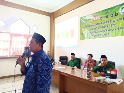 Bandung, Pimpinan Wilayah Persatuan Guru Nahdlatul Ulama (Pergunu) Jawa Barat kerjasama dengan Kementrian Koperasi dan UKM RI menyelenggarakan workshop Wirausaha Pemula dengan tema “UMKM untuk Meningkatkan Usaha dalam Percepatan Ekonomi di Sektor Ril” yang dilaksanakan di Gedung PWNU Jawa Barat Jl Terusan Galunggung No. 9 Bandung. (27/11/2019)
