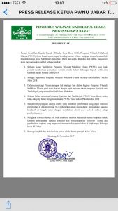 “Selama belum ada rapat bersama Syuriah dan Tanfidziyah PWNU Jawa Barat, maka tidak ada yang boleh mengatasnamakan PWNU Jabar terkait Pilkada Jabar 2018,” tegasnya seraya mengajak seluruh elemen Nahdlatul Ulama (NU), baik struktural maupun kultural di semua tingkatan untuk kembali menciptakan suasana kondusif dan mengedepankan tabayun.