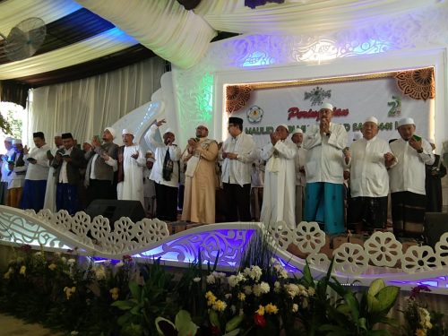 dan terima kasih kepada semua pihak yang telah membantu suksesnya acara peringatan Maulid di Pesantren tidak ada kata lain selain doa semoga ini menjadi wasilah agar kita semua mendapatkan syafaat dari Baginda Nabi Muhammad Shallallahu Alaihi Wasallam, Alhamdulillah seperti tahun lalu yang saya katakan tahun depan Maulid kita tidak sewa tenda lagi, ini baru selesai 2 bulan dikerjain tenda baru. sudah punya pesantren, di setiap Kitab Maulid apa yang kita rencanakan diijabah oleh Allah subhanahu wa ta’ala, Allah Subhanahu Wa Ta’ala. Terang beliau.